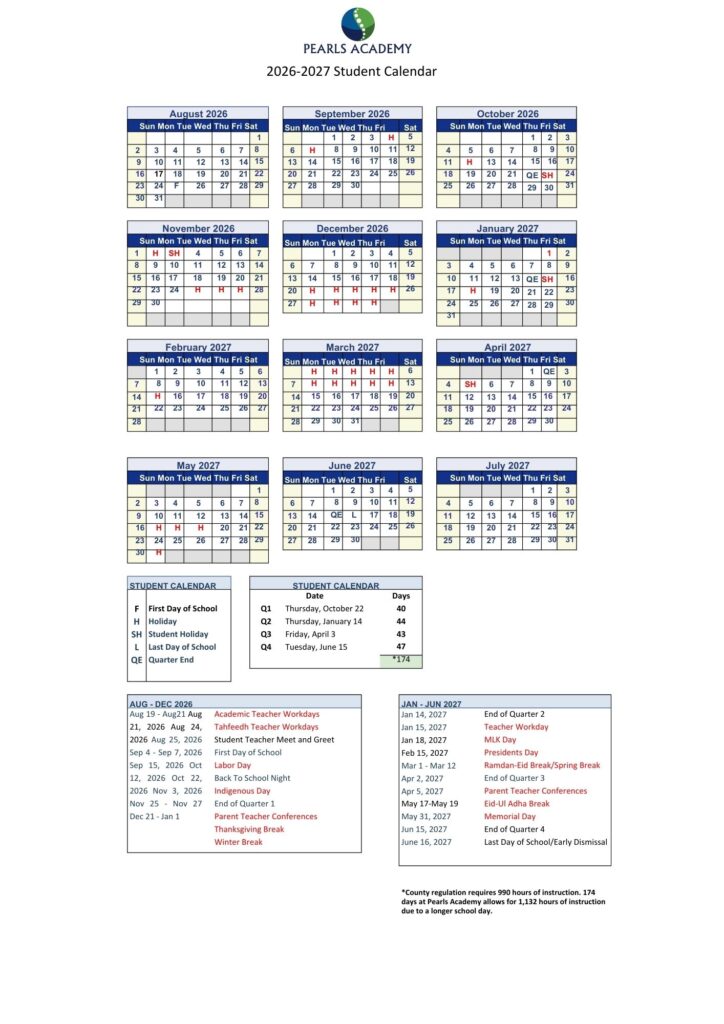 Pearls Academy School Year 2026 - 2027 Pearls Academy School Year 2026 - 2027 Note: Calendar subject to change.